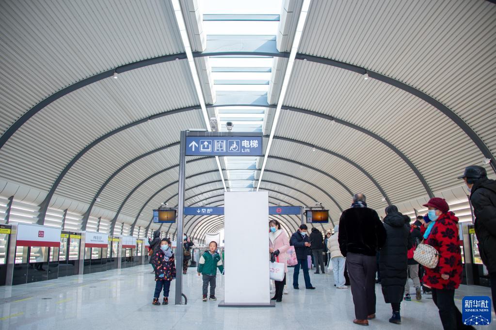 12月26日,市民在武漢軌道交通5號線中醫藥大學站,準備乘坐湖北首條全自動駕駛線路。新華社發(伍志尊攝)