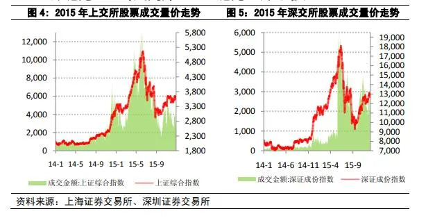 據《央行2015年金融市場運行情況報告》顯示,當時兩市總成交額為255.6萬億元。其中滬市全年累計成交133.1萬億元,日均成交5454.9億元,深市全年累計成交122.5萬億元,日均成交為5020.3億元。