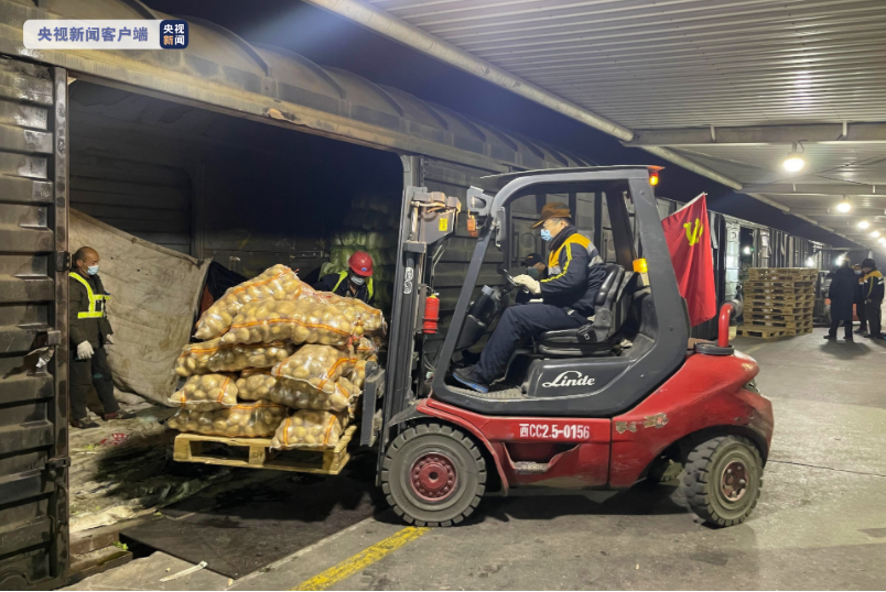12月29日22時52分,從陝西榆林發出的158.2噸麪粉、米、蔬菜等生活物資搭乘57999次列車抵達西安國際港站,將從西安國際港站緊急轉運,分撥到西安市疫情防控重點區域,保障市民生活需要。這也是陝西省內首批通過鐵路運輸的抗疫生活物資。