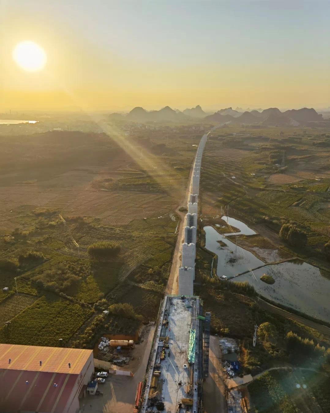 12月30日,廣西交通投資集團南玉鐵路有限公司投資、南寧局集團南寧鐵路工程建設指揮部代建、中鐵廣州工程局集團參建的新建南玉鐵路控制性工程——百合鬱江特大橋——西主塔圓滿封頂,大橋東主塔此前已於12月7日封頂,標誌着世界最大跨度無砟軌道鋼混斜拉橋進入主橋鋼樑架設階段。