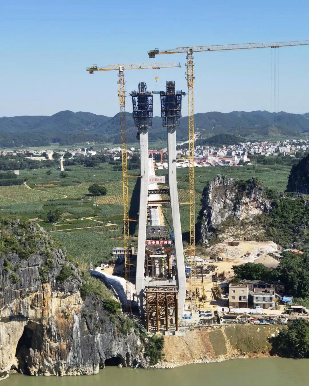 廣西百合鬱江特大橋西主塔圓滿封頂 南玉鐵路建設獲突破性進展