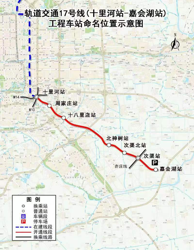 17號線是一條位於北京東部貫穿南北的骨幹線路。今年開通的南段從十里河至亦莊站前區南,全長15.8公里,設7座車站,其中,在次渠站與亦莊線換乘、十里河站與10號線、14號線換乘。17號線是北京第一條使用時速100公里A型不鏽鋼車體全自動駕駛模式技術的線路,車輛選用8輛編組相較於傳統的車輛,每趟車定員增加約60%,大幅提升運載能力。