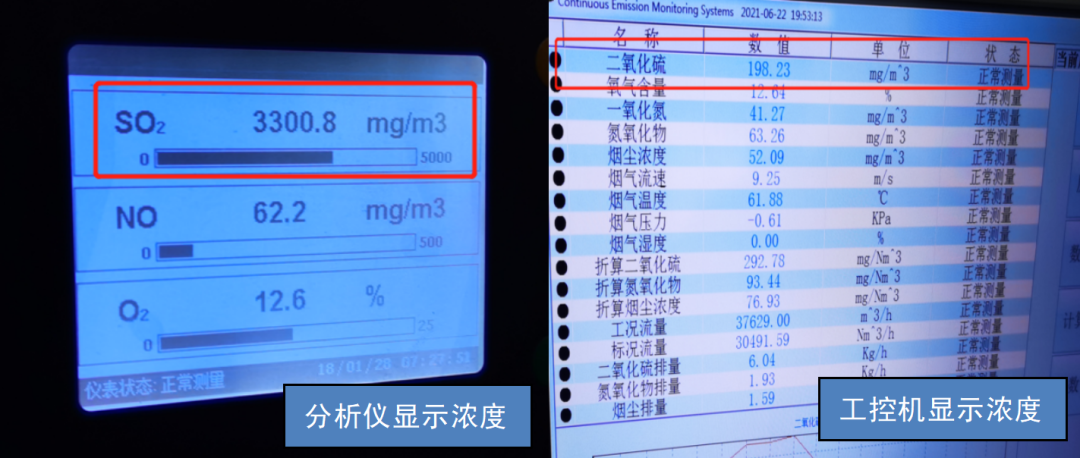 2021年6月22日,四川省生態環境保護綜合行政執法總隊通過分析監控數據發現,攀枝花市鈦都化工有限公司自動監測數據異常,立即聯合攀枝花市生態環境保護綜合行政執法支隊對該公司開展突擊檢查。現場檢查發現,該公司煅燒旋轉窯尾氣自動監測設備煙氣分析儀顯示的二氧化硫濃度為3292.9mg/m3,超過《工業爐窯大氣污染物排放標準》(GB 9078-1996)規定限值2.87倍,同時段該設備工控機顯示的二氧化硫濃度僅為197.57mg/m3。檢查人員使用二氧化硫標氣對自動監測設備進行校驗,發現工控機和數採儀的讀數均比分析儀讀數小94%。
