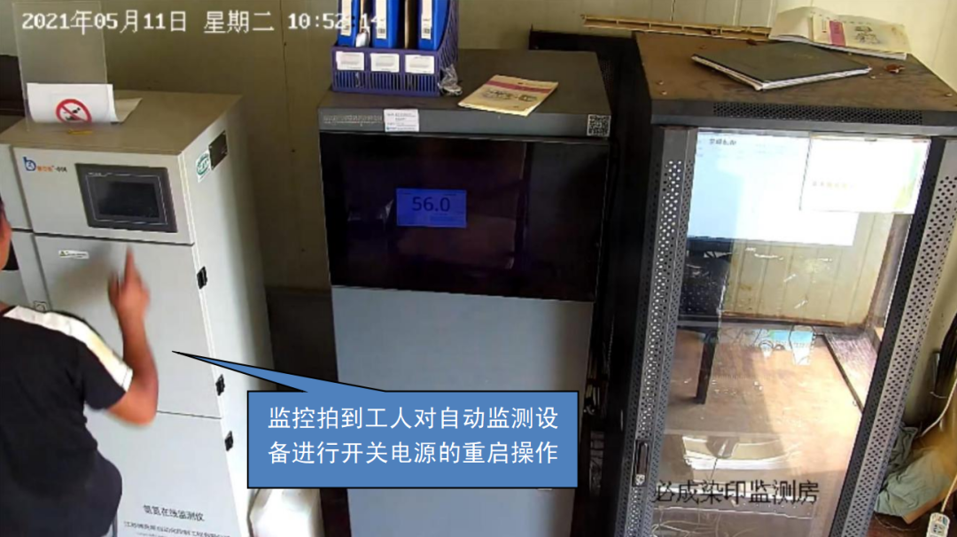 2021年3月18日凌晨,甘肅省生態環境調查中心在利用污染源自動監控動態管控系統進行視頻巡查時發現,蘭州興蓉環境發展有限責任公司有人員進入自動監測站房,疑似進行違規操作,隨即將該線索移交蘭州市生態環境部門。蘭州市生態環境保護綜合行政執法隊執法人員立即對該公司進行檢查,發現該公司員工閆某正在將化學需氧量自動監測設備的採樣頭拔出,插入裝有清水的塑料桶內,干擾分析儀正常採樣。