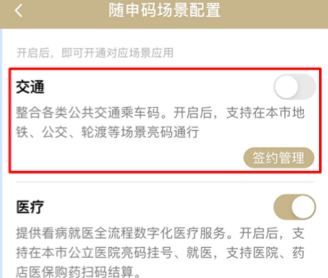 前往“隨申碼”場景配置,開啓交通場景、簽約支付渠道;