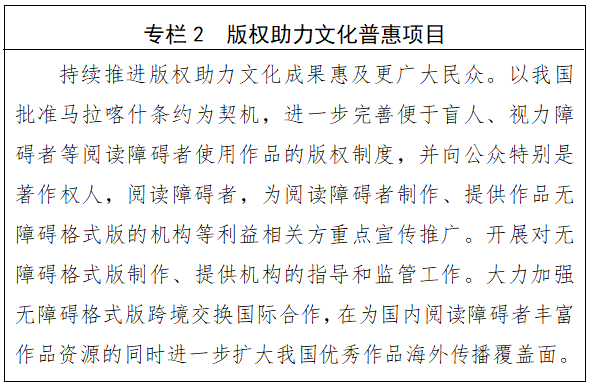 2. 推進有關著作權國際條約的磋商制定和批准工作。深度參與世界知識產權組織框架下全球版權治理,積極參與、推動相關著作權國際條約的磋商、制定工作。推動國內著作權法律法規與我國已參加的國際公約協調和對接。配合全國人大常委會、國務院推進馬拉喀什條約等國際版權條約的批准及落地實施。