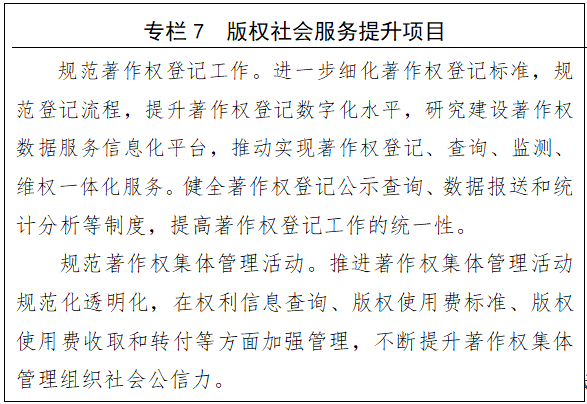 完善版權社會服務體系,優化版權社會服務體制機制,創新工作方式方法,引導和規範版權社會服務機構建設,全面提升版權社會服務能力。