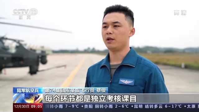 *第74集團軍某旅飛行員 蔡俊:*在以往的類似的考核中,每個環節都是獨立的考核課目,由不同的人去完成,而這次,隨機抽取我們一個連,連貫實施所有的作戰流程。參考連指揮員要自主研判敵我態勢,定下戰鬥決心,進行航線規劃、兵力編組等一系列地面籌備工作,在考核過程中我們還可能會遇到一些臨機設置的突發情況,檢驗我們戰法協同、臨機處置等方面的綜合能力。