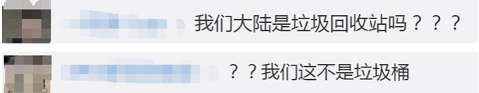 有網友問疑惑:“我們大陸是垃圾回收站嗎?”↓