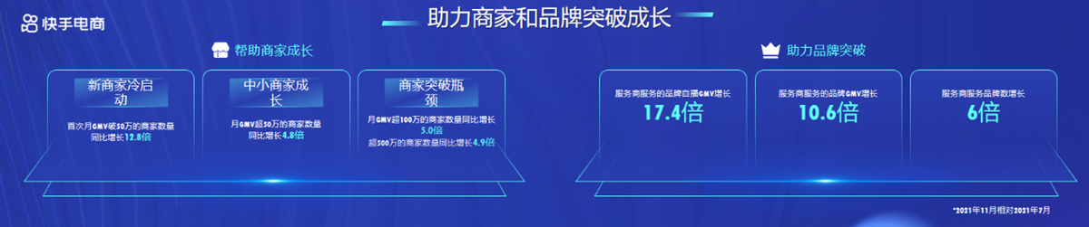 2021年7月快手電商提出“大搞信任電商、大搞品牌、大搞服務商”的戰略以來,已有不錯的階段性成果。