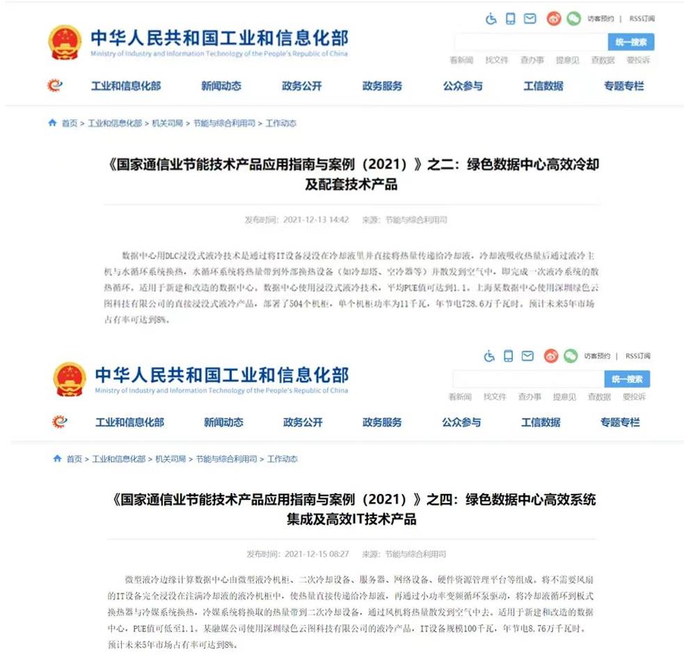 近日,工信部公佈了《國家工業節能技術推薦目錄(2021)》(簡稱:《目錄》)。網宿科技旗下子公司綠色雲圖的“數據中心用DLC浸沒式液冷技術”和“微型液冷邊緣計算數據中心”成功入選該目錄。