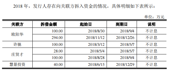 招股書顯示,宏景科技存在向關聯方拆入資金的情況。2018年,宏景科技與關聯方之間發生的資金拆入是企業間因生產、經營需要而發生的短期資金融通,拆借金額共計662萬元,借款均已清償。