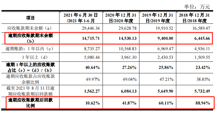 對於上述情況,宏景科技表示,“公司逾期應收賬款對應客户主要為大型民營企業及國有企、事業單位,上述客户在項目驗收後方才開始啓動請款流程,該流程實際耗時較長,導致公司逾期應收賬款金額較大”。