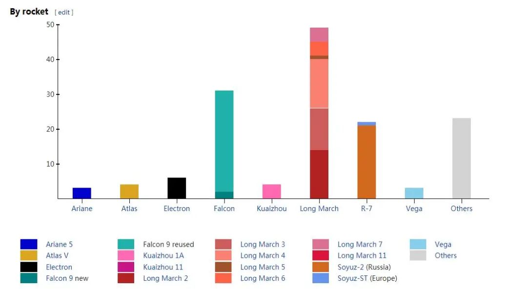 而按照維基百科的統計,全球進行了145次年度發射(多出的一次似乎是維基百科多記錄了一次中國的發射),除此之外,各國的年度發射次數基本與上述統計基本一致。