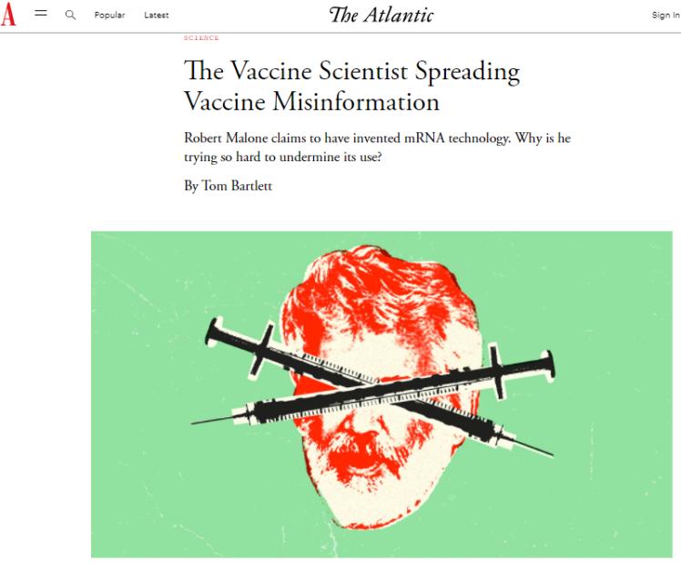 今年8月份,美國《大西洋月刊》雜誌專門發表文章對馬龍進行了介紹。文中提到,馬龍曾稱美國輝瑞、莫德納的新冠疫苗可能會使新冠感染情況加劇。