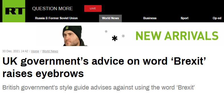 【環球網報道】據“今日俄羅斯”(RT)、俄羅斯衞星網30日報道,英國約翰遜政府發佈了一份“風格指南”,對該國官方內容表述提出了多個建議,其中包括建議該國官員不要使用“脱歐(Brexit)”這一詞組,而是用具體日期“2020年12月31日”或者“當英國離開歐盟時”這句話來替代。報道稱,這一內容在社交媒體上引發網友批評。