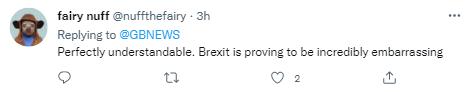有網友認為“可以理解”:“完全可以理解。(因為)脱歐已經被證明是極度尷尬的(一件事)。”↓