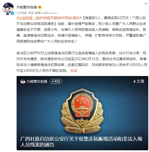 每查獲1人最高獎10萬!廣西征集非法入境人員線索,對查實核酸陽性的重獎舉報人