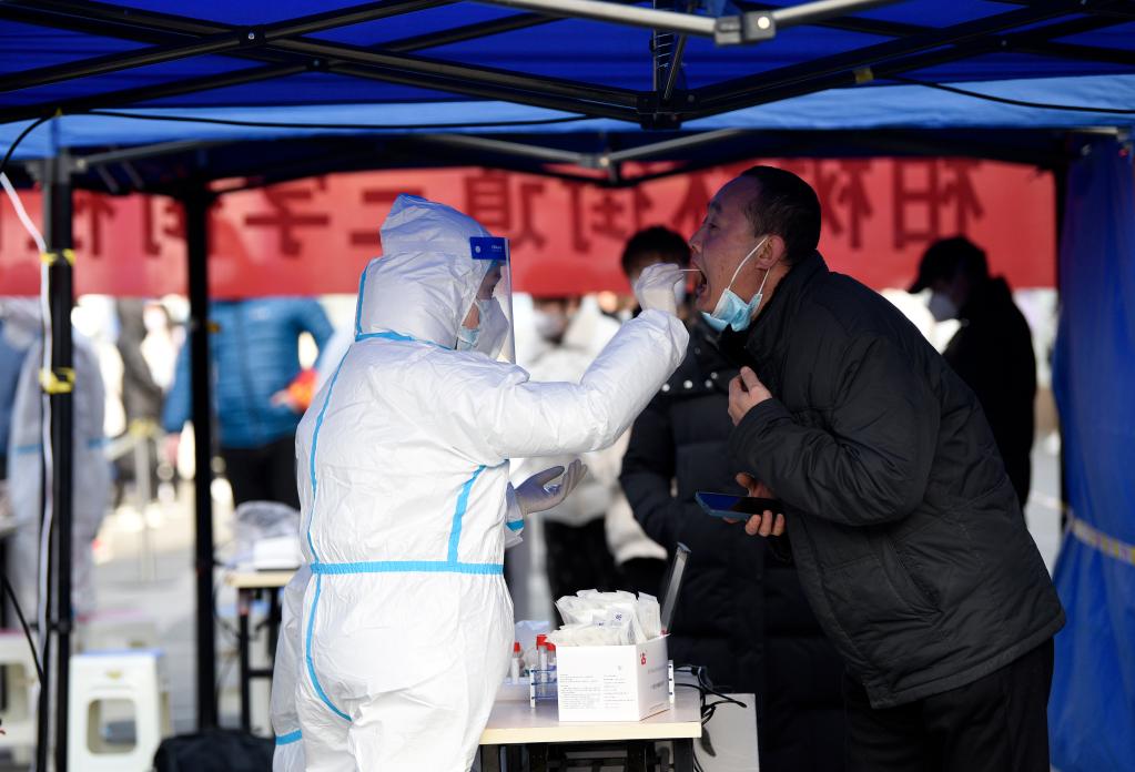 12月17日,市民在西安市碑林區柏樹林街道三學街社區核酸檢測點進行核酸檢測。新華社記者 劉瀟 攝