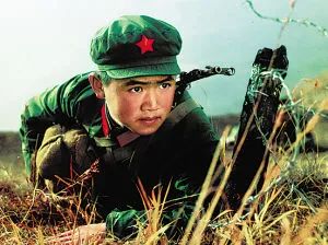 上世紀50年代中期身披偽裝網的戰士參加演習