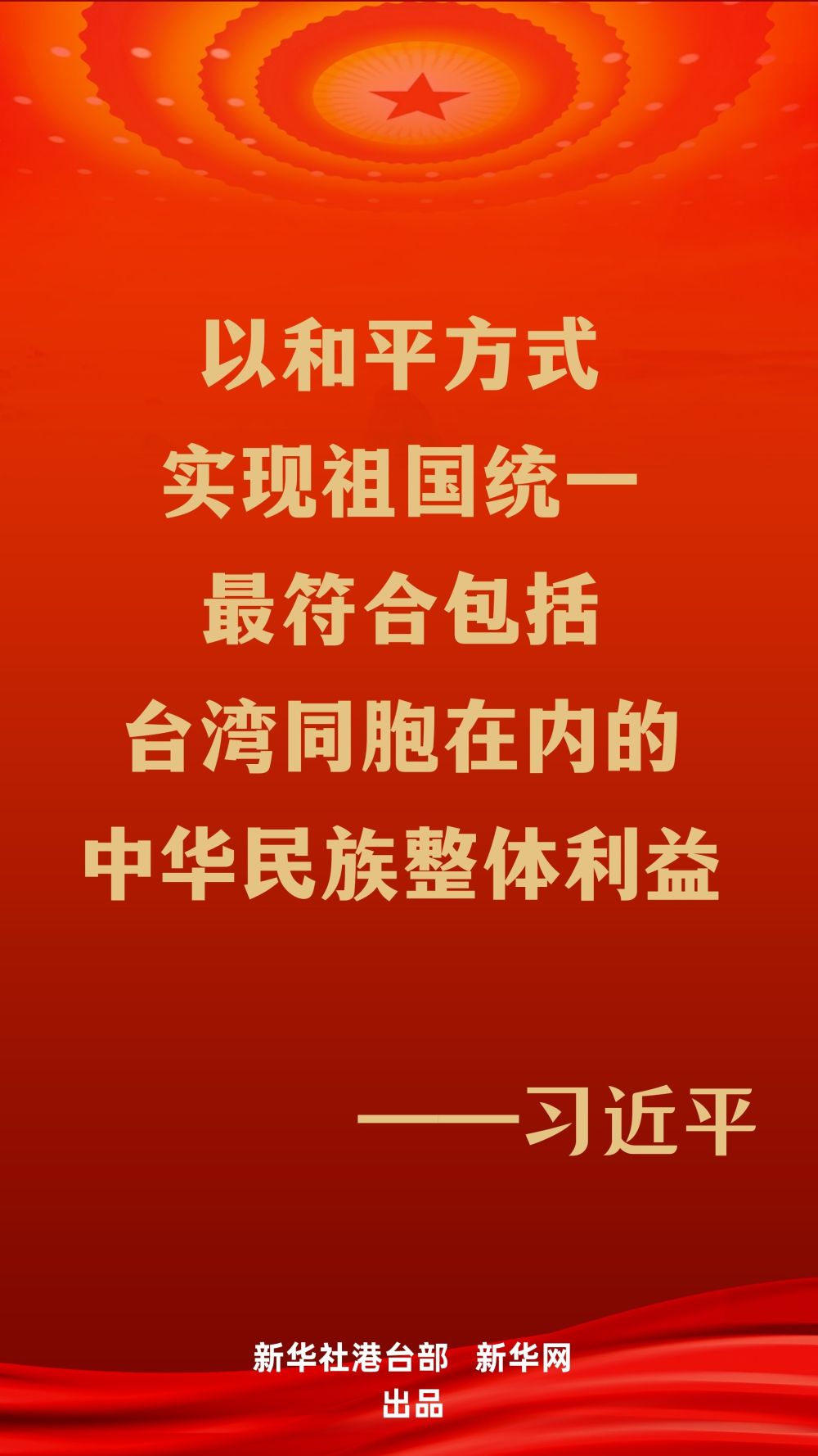 在紀念辛亥革命110週年大會上,習近平總書記發表重要講話指出,以和平方式實現祖國統一,最符合包括台灣同胞在內的中華民族整體利益。我們堅持“和平統一、一國兩制”的基本方針,堅持一箇中國原則和“九二共識”,推動兩岸關係和平發展。