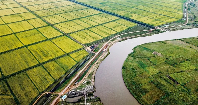 消除貧困是人類面臨的共同挑戰。中國通過“一帶一路”倡議幫助沿線各國增加就業、改善民生,以實際行動為推進全球減貧事業作出貢獻。根據世界銀行研究報告,“一帶一路”倡議將使相關國家約760萬人擺脱極端貧困、3200萬人擺脱中度貧困。圖為2019年4月7日無人機拍攝的莫桑比克中非農業合作項目——萬寶莫桑農業園的水稻田,該項目極大地緩解了莫桑比克糧食短缺問題。 新華社記者 張宇/攝