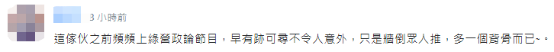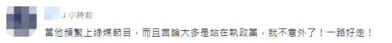 此事也引起一些島內網友的議論,有人説,“當他頻繁上綠媒節目,而且言論大多是站在‘執政黨(指民進黨)’,就不意外了!一路好走!”“一直上政論節目,就知道立場。”“於北辰的言論已經漸漸跟綠色的人差不多了。” ↓