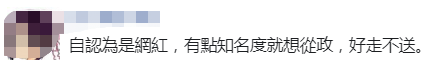 還有人稱,“自認為是網紅,有點知名度就想從政……”↓