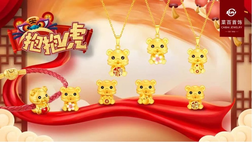 菜百股份相關負責人在接受環球網財經消費資訊記者採訪時談到,“抱抱”系列是菜百首飾眾多自主設計研發飾品中銷售最火熱的系列之一。在推出的虎年款式中,抱抱虎萌趣叢生,加上3D硬金、琺琅烤彩等等工藝,將傳統與時尚完美結合,由於寓意貼近新春美好願望,獲得許多年輕消費者的歡迎。
