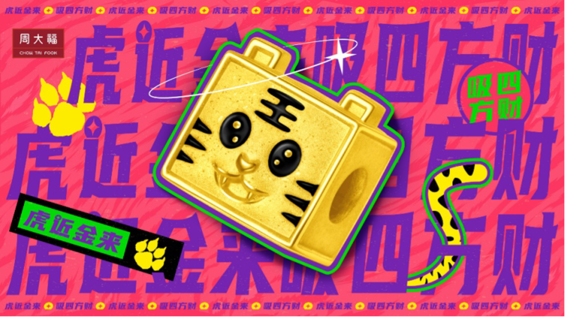 周大福也是國民珠寶品牌,已經有90多年的歷史了,也為很多消費者帶來了很多好黃金、好首飾。周大福的一款“轉運珠”引起了環球網財經消費資訊記者的注意,“虎近金來,吸引四方財”的寓意。據周大福相關負責人介紹:“該款‘轉運珠’飾品售價1580元,以老虎和四方形為原型設計而成,經過特徵的提煉與形象要素的整合延續,品牌形象特色,具有獨特性及創新性。四方指天下,匯聚天下之財。Q萌神態,虎牙微露的奶兇瑞寵形象寓意護主消災、長命富貴、平安喜樂、勇敢強健。虎口張開,展現吞天下財而不漏的美好期許。背面勾財尾,傳遞招財不止,聚財不息的願景,整體設計盡顯趣味及獨特魅力。”