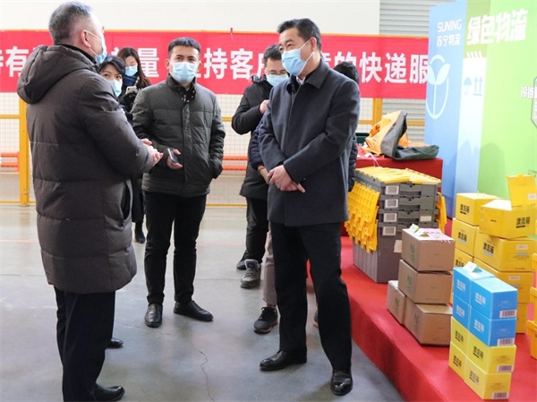 12月30日,國家郵政局副局長陳凱一行來到蘇寧易購物流北京基地調研,現場瞭解蘇寧易購物流綠色包裝、作業規範後,陳凱高度點贊蘇寧易購在綠色物流、生態環保等方面做出的率先示範及深入探索,肯定了蘇寧易購踐行企業社會責任的積極性,並勉勵蘇寧易購物流在可持續發展方面繼續努力。