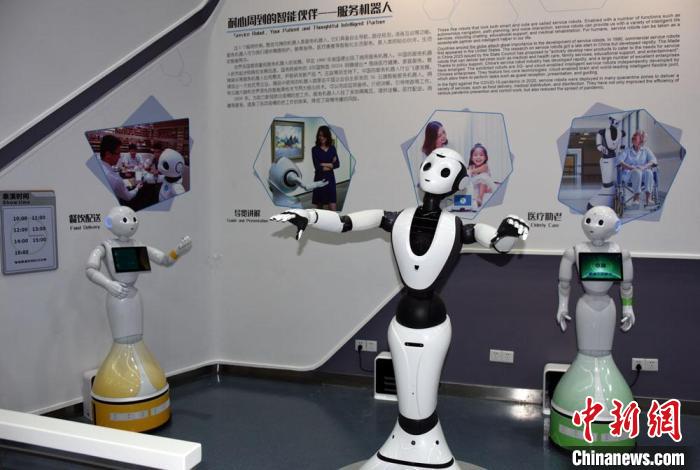 中國科技館“智能”展廳攜多款機器人亮相,服務機器人舞蹈演示。中新社記者 孫自法 攝