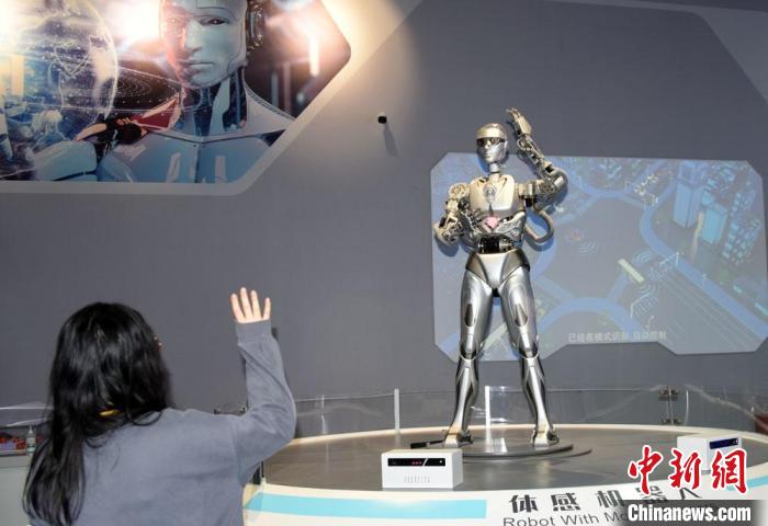 中國科技館“智能”展廳攜多款機器人亮相,體感機器人演示。中新社記者 孫自法 攝