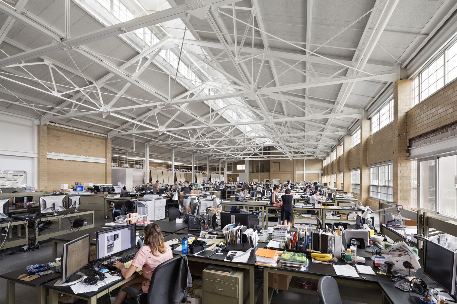 費城 KieranTimberlake Architects 的辦公室是從一家以前的啤酒灌裝廠改建而來的,從屋頂的明間採集自然光和通風。攝影師:Michael Moran Photography Inc.保羅·舍爾(Paul Schwer)設法通過遵循新的節能減排口號,使他在俄勒岡州波特蘭的1967年牧場房屋實現淨零能耗:電氣化一切。他用電熱泵替換了燃氣爐和熱水器 — “人們不太意識到過去10年裏它們變得多麼高效,”他説 — 家庭的新爐灶是電感應型號。建築物可以通過消除任何依賴石油或天然氣燃料的設備來顯著減少碳足跡,前提是電網成功最終消除化石燃料 — 這是一個很大的假設。“整個西海岸計劃到2040年實現100%的可再生能源供電,”舍爾説,但美國其他地區的進展並不那麼迅速。