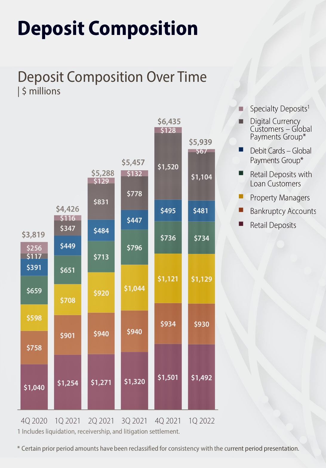 來源: 大都會商業銀行網站](https://s25.q4cdn.com/875579831/files/doc_presentations/2022/04/Investor-Presentation-3.31.2022-Final.pdf)Voyager在Metropolitan的“For Benefit of Customers”賬户中存入了3.5億美元。而雖然他們的加密貨幣持有的命運尚不明朗,Voyager客户的美元存款“在與Metropolitan完成調解和防欺詐流程後將獲得對這些資金的訪問權。”這是一種熱錢頭痛問題,很可能會使不那麼冒險的銀行家重新回到對與“加密市場應得的客户”做生意時全面懷疑的立場。