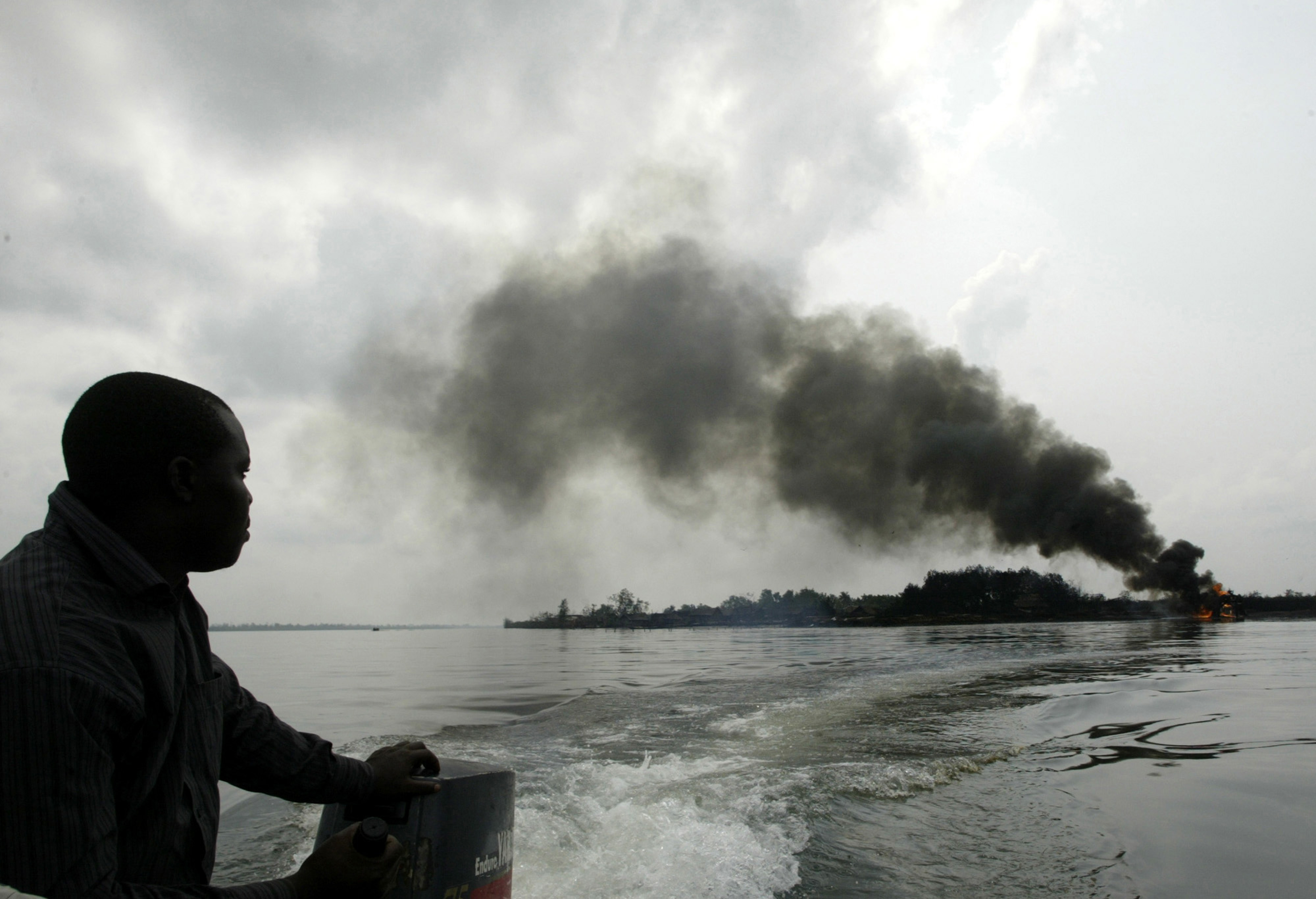 2005年,尼日爾三角洲Asagba Okwan Asarama地區殼牌公司的一條破裂油管冒出的煙霧,距離波特哈科特西南約50公里。攝影師:George Osodi/AP Photo自1956年首次在尼日爾三角洲發現石油以來,殼牌公司一直是尼日利亞最主要的石油公司。該公司已經建造了超過6000公里(3700英里)的管道,鑽探了1000多口油井,生產了該國39%的原油。其當地合資企業從1950年代末到1993年在奧戈尼地區開採石油,之後在作家肯·薩羅-維瓦領導的大規模抗議活動中離開了該地區,指責其污染農田和漁業。軍政府殘酷鎮壓了抗議活動,於1995年處決了薩羅-維瓦和其他八名奧戈尼領袖。