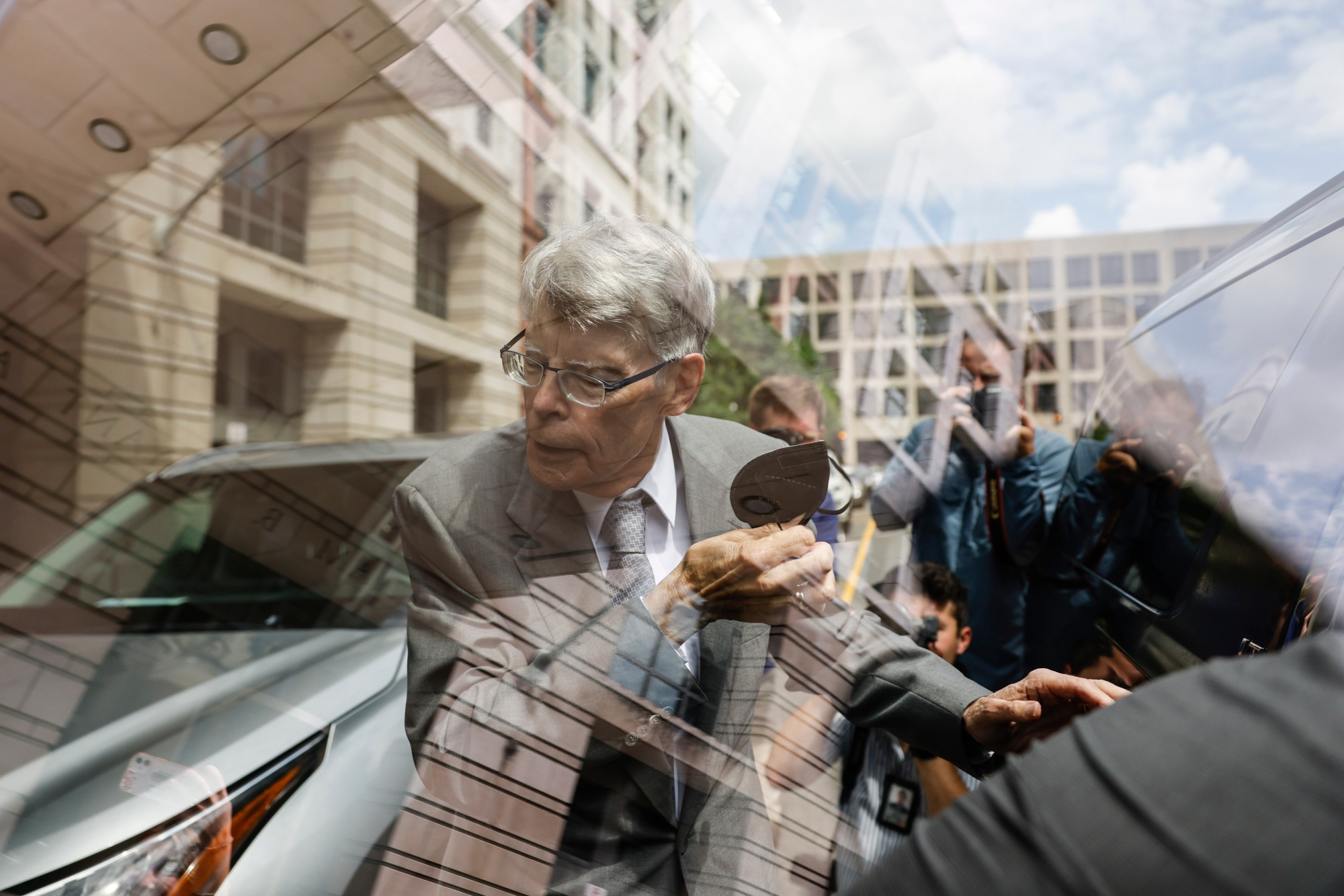 作者史蒂芬·金(Stephen King)在2022年8月2日星期二離開華盛頓特區的聯邦法院。金在一起反壟斷訴訟中為聯邦政府作證,該訴訟旨在阻止企鵝蘭登豪斯有限責任公司(Penguin Random House LLC)對西蒙與舒斯特公司(Simon & Schuster Inc.)的218億美元收購。攝影師:Ting Shen/Bloomberg派拉蒙環球(Paramount Global)決定放棄將其西蒙與舒斯特圖書出版集團出售給貝塔斯曼股份公司(Bertelsmann SE)的交易,因為一名法官阻止了218億美元的交易。