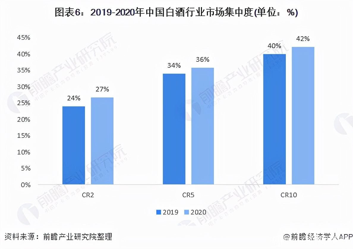 2020年,白酒行業市場集中度CR5為36%,CR10為42%,仍處在完全競爭狀態,包括江小白、幾何酒在內的白酒新品牌是有機會憑藉這波政策紅利在中低端市場站穩腳跟。