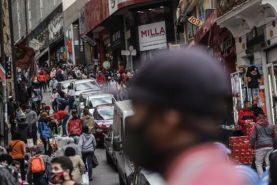 2021年8月4日,巴西聖保羅市的一條商業街。圖|新華社