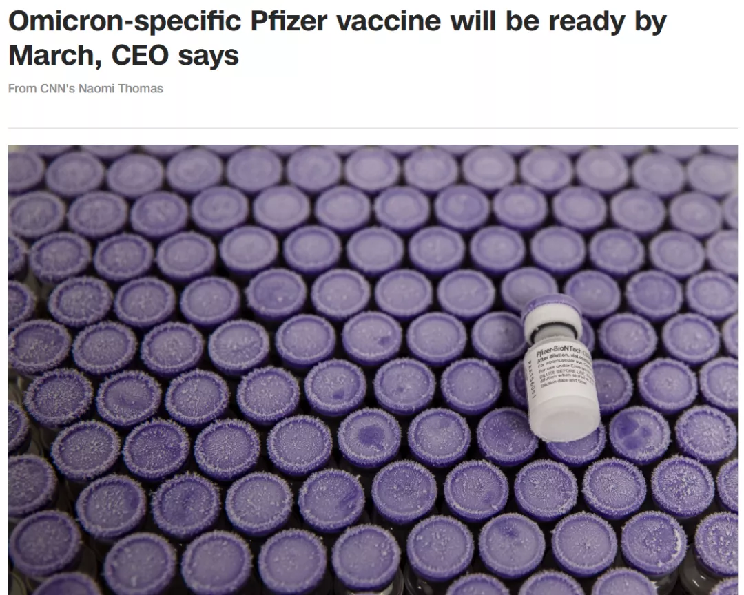 最後,一個好消息是輝瑞表示已經改進了疫苗,3月前就能推出能針對****Omicron的新版本疫苗了。