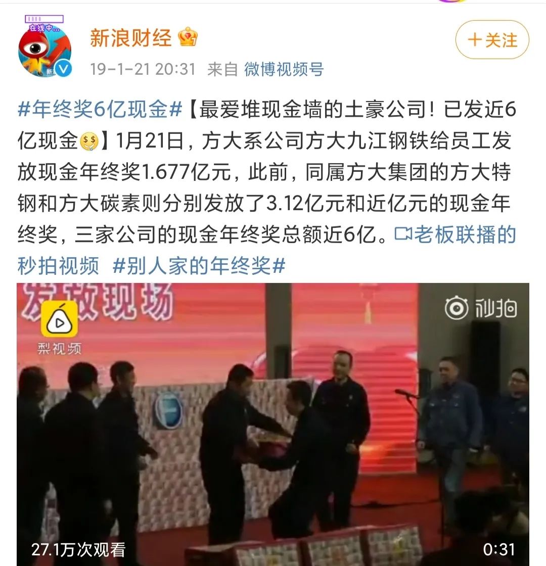 方大集團,全國數一數二的鋼鐵公司,發高額年終獎已經變成了傳統。發放方式也極具特色:堆“人民幣山”,按捆發放。