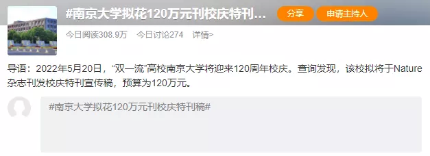 網友們的激烈討論,也直接把 “ 南京大學花 120 萬上 Nature ” 的話題頂上了熱搜。