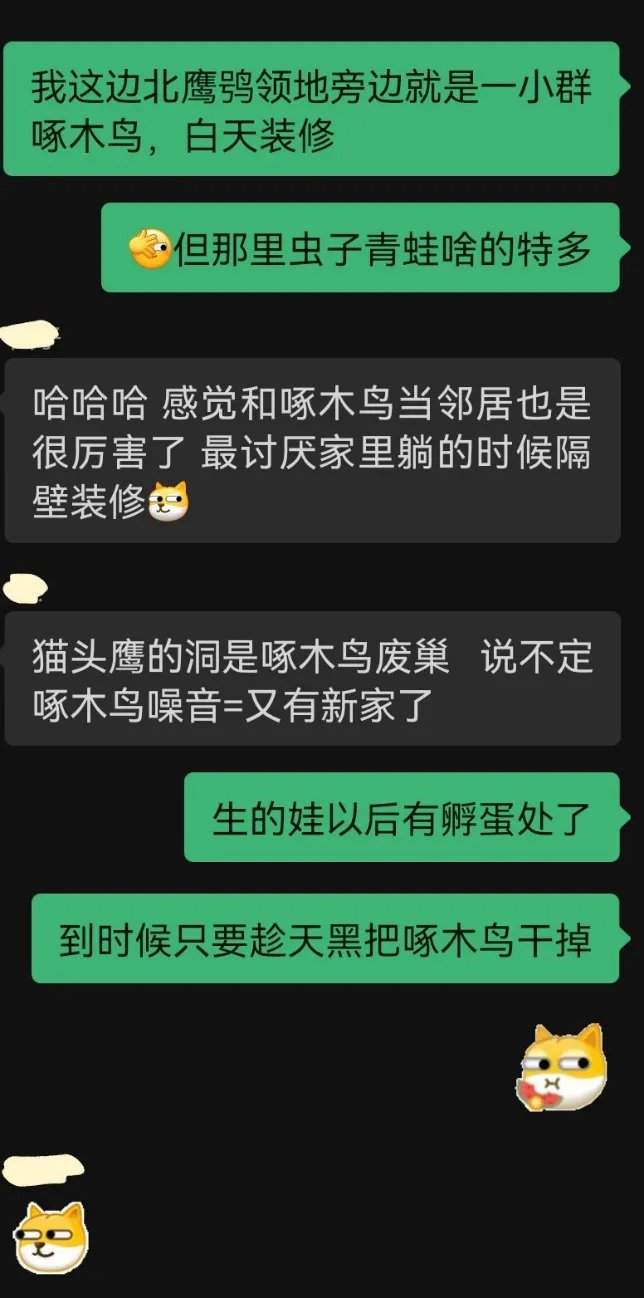 後來我跟觀鳥羣友關於貓頭鷹和啄木鳥的討論