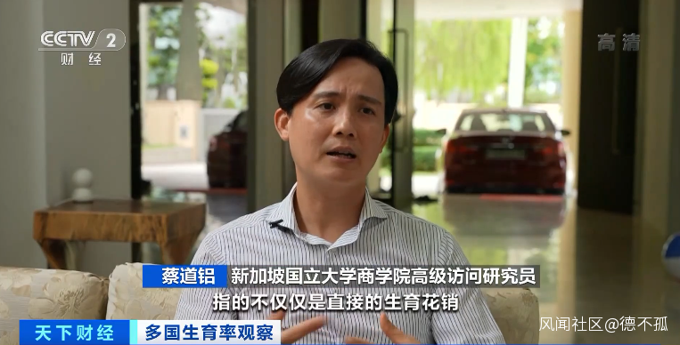 新加坡國立大學商學院高級訪問研究員 蔡道鋁:養育孩子費用高指的不僅僅是直接的生育花銷,還包括因為養育孩子喪失的機會成本,一個家庭決定要孩子時,父母主要會在職場上作出很多犧牲。