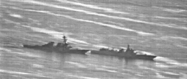 ▲蘭州號(右)以高技術手段驅離美國軍艦