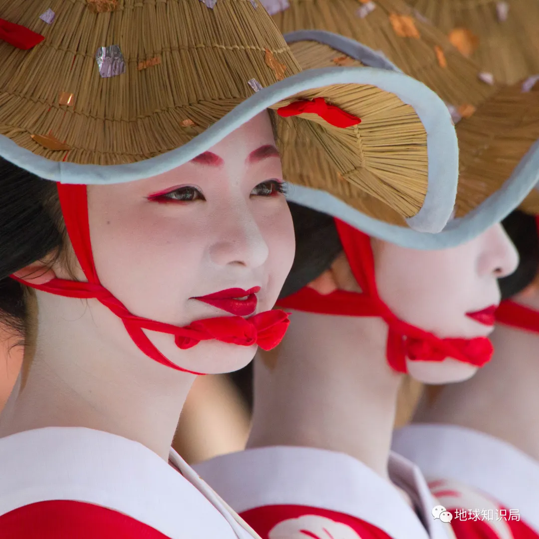 濃妝豔抹,彎鈎細眉,櫻桃小嘴包裹着塗抹成黑色的牙齒,這是一種傳統的日式審美風尚。年輕漂亮的藝伎們會為客人奉茶斟酒,還有表演傳統歌舞,與客人們聊天做遊戲,以求賓客盡歡。
