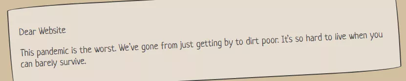 這一點創建者就給大家起了個頭,在網頁説明中,創作者説了這樣一句話“It’s been a rough few months(這幾個月情況很艱難)”。鑑於網站發佈於疫情開始在全球蔓延的時期,這句話的所指不言而喻。
