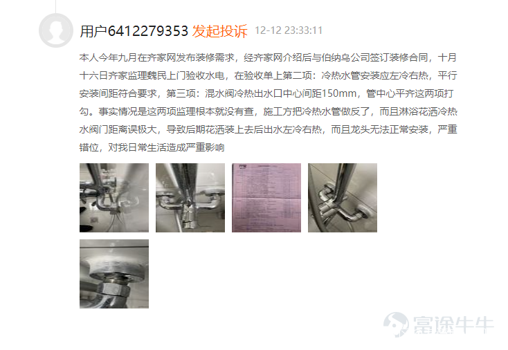 有消費者表示,由於信任選擇了齊家網進行第三方的監管。但齊家網對合作的裝修公司沒有任何審核,且監管不力。裝修公司設定的合同均存在問題,裝修工程存在多處質量問題,齊家網驗收並沒有對問題進行反饋。