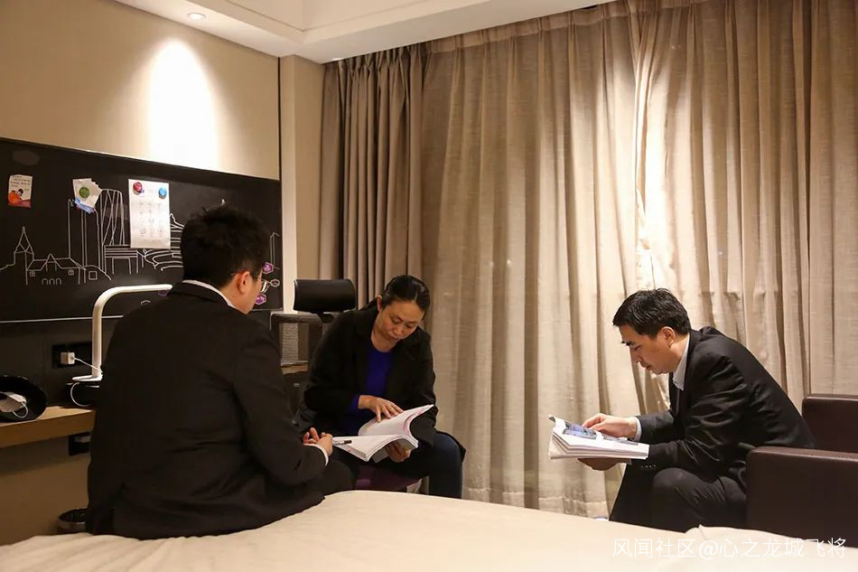 2020年6月4日,第一次庭前會議前一晚,黃樂平、李婧在酒店內核對要提交的證據。夏天 攝