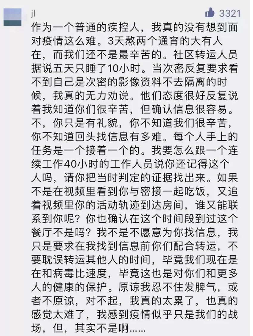 類似這樣種種的行為軌跡和細節,去判定誰是明確密接需要隔離